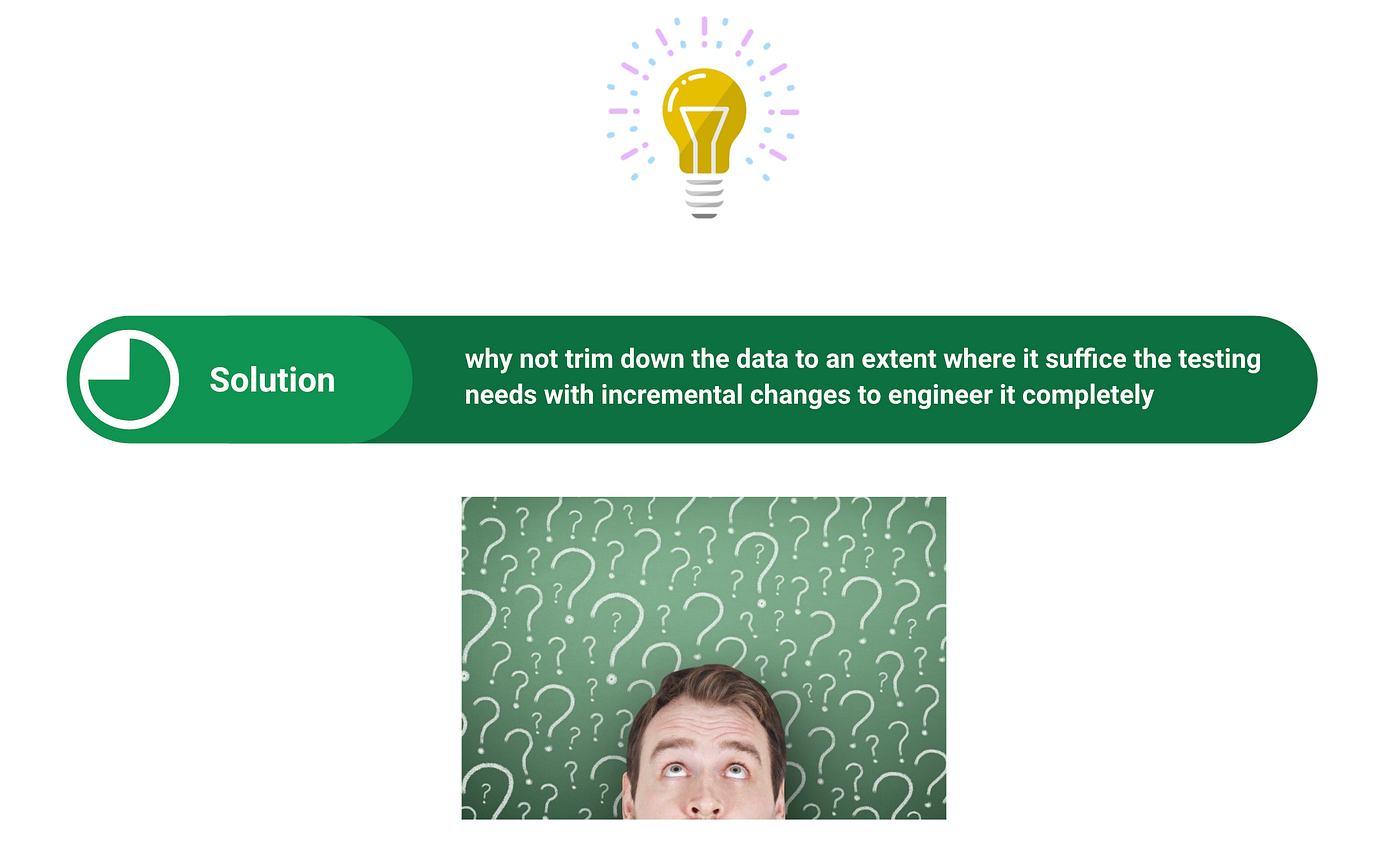 Taking an Iterative approach would make data reduction process a little more easier. It will also help us build confidence on reduced test data reliability to suffice QA and automation testing needs. Below are the Major steps we took in order to start the data reduction.